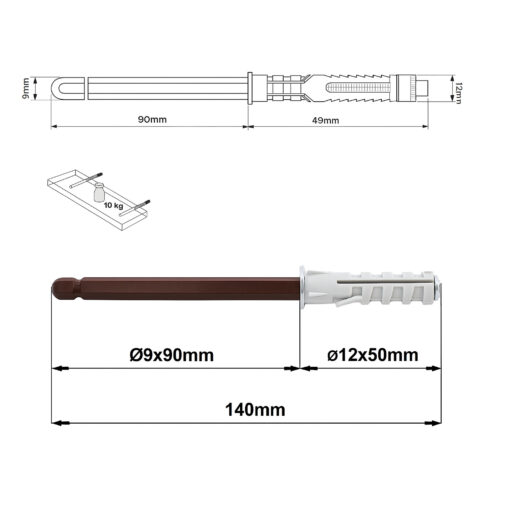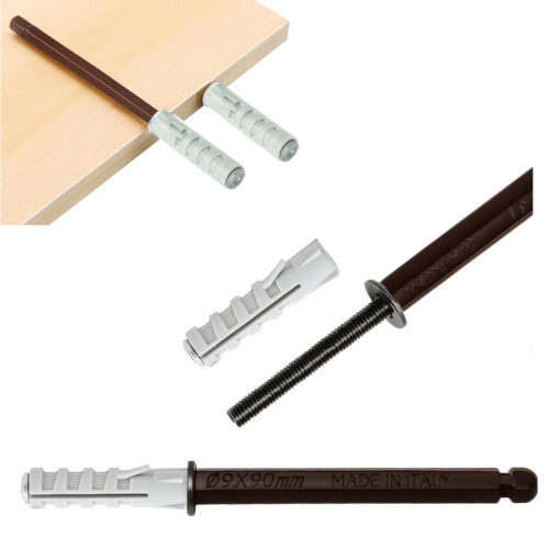 Die Unsichtbare Regalhalterung 9×90 mm ist ein verdeckter Tablarträger für leichte Regalböden und Schweberegale. Der Metallkern mit Kunststoffummantelung sorgt für ruhigen Sitz im Holz, der Dübel ermöglicht eine sichere Wandmontage.