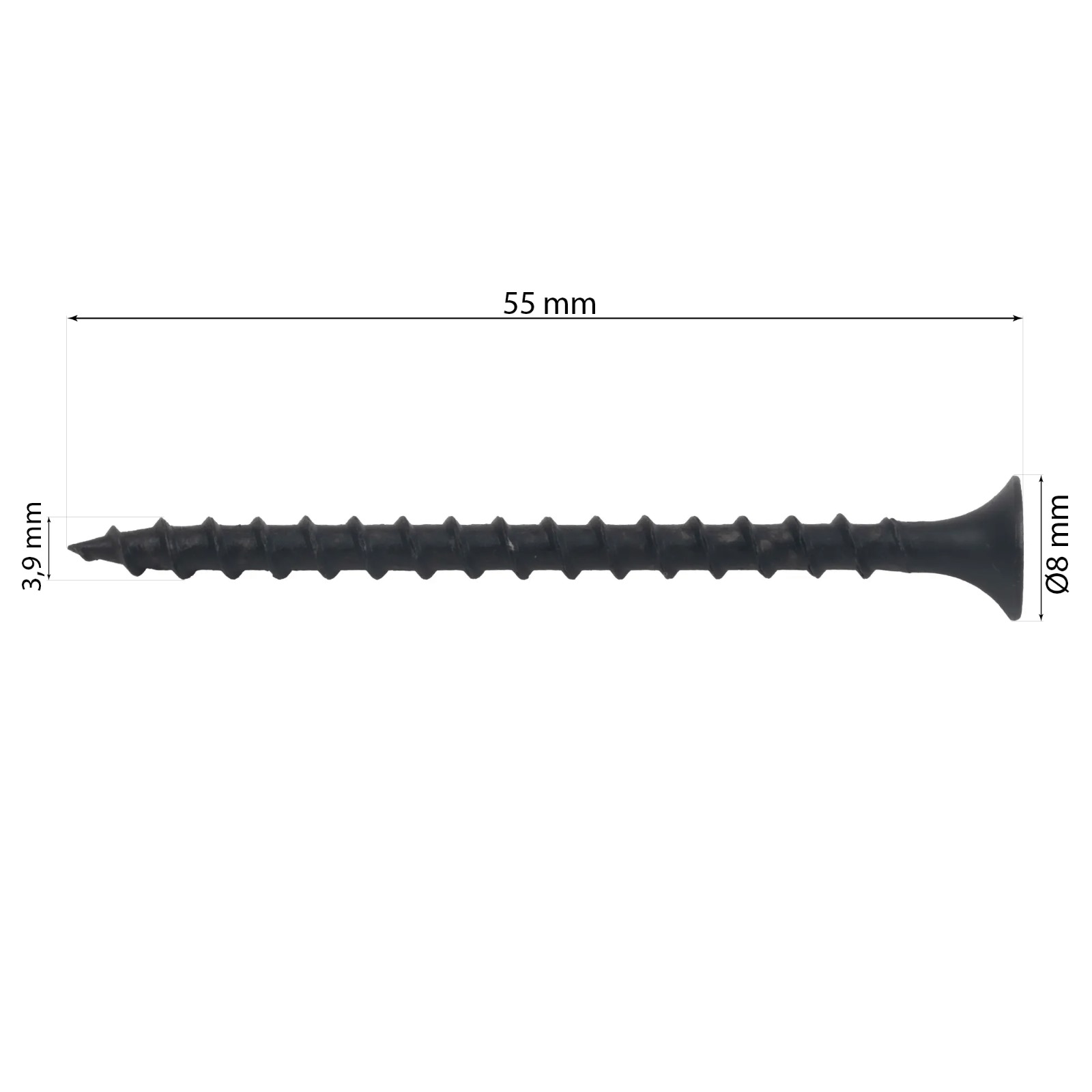 - Abmessung: 3,9 × 55 mm, Vollgewinde, Nadelspitze