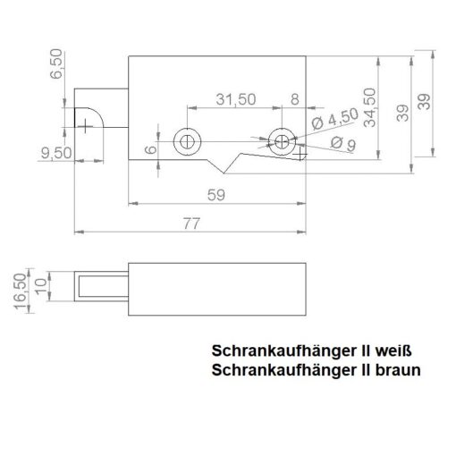 Der Schrankaufhänger höhenverstellbar ermöglicht eine sichere und präzise Montage von Oberschränken. Durch die kombinierte Höhen- und Tiefenverstellung lässt sich der Schrank exakt ausrichten. Das robuste Gehäuse aus Kunststoff und der Träger aus verzinktem Stahl sorgen für hohe Stabilität – ideal für Küchen, Badmöbel und Werkstattschränke.