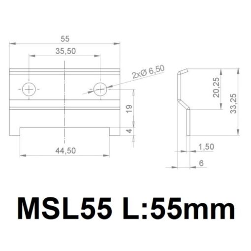 - 55 mm (MSL55) – Länge 55 mm, Höhe 27 mm