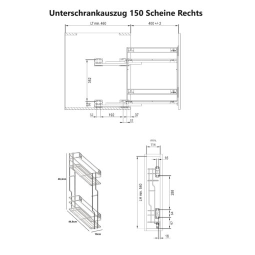 - Breite 150 mm: ideal für schmale Unterschränke ab 114 mm Innenbreite