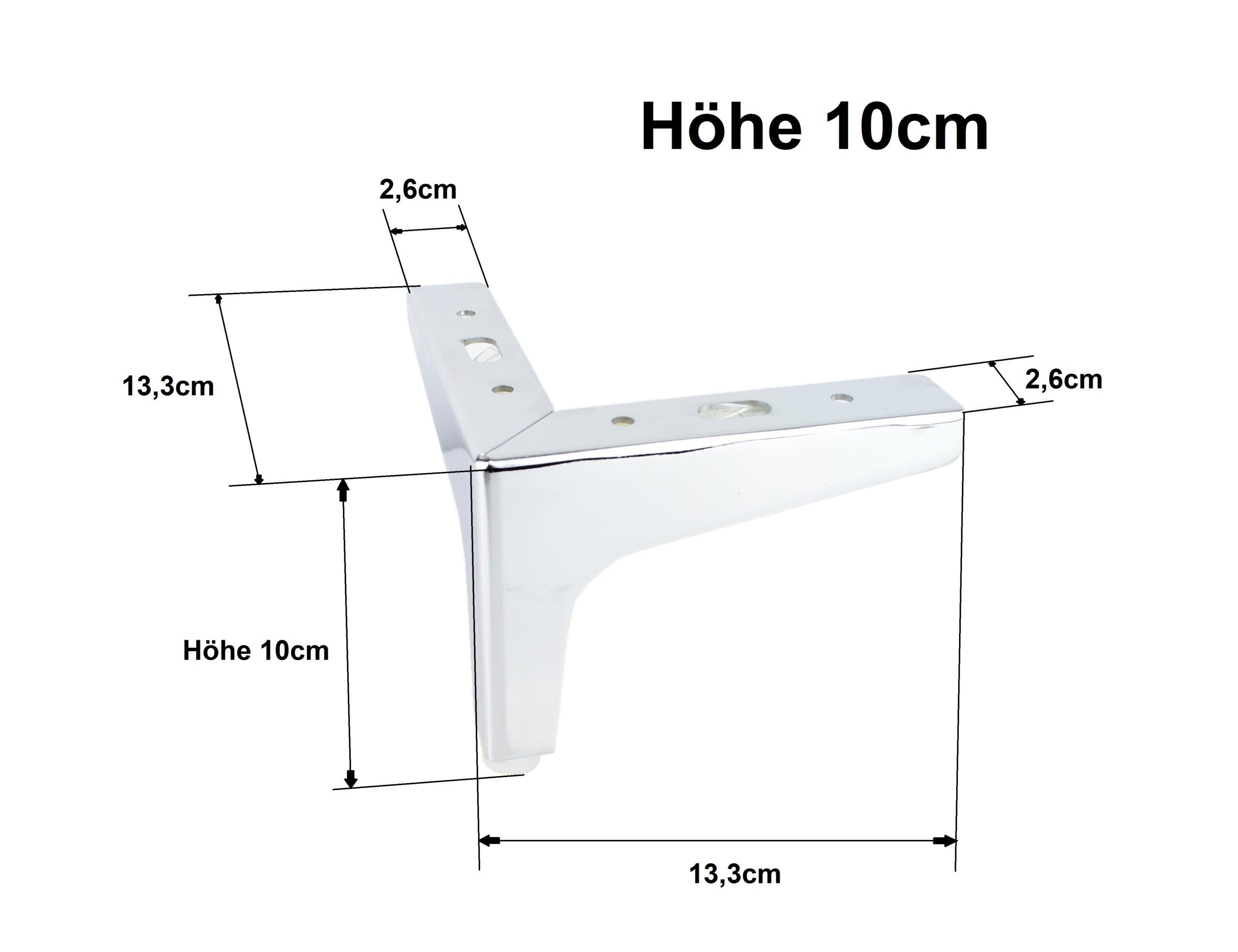 Elegante Chrom-Möbelfüße (10 cm) aus veredeltem Stahl – Hochglanz-Optik, stabil und korrosionsbeständig. Ideal für ein exklusives und modernes Wohndesign.