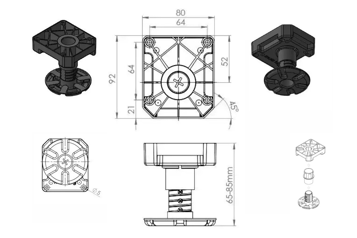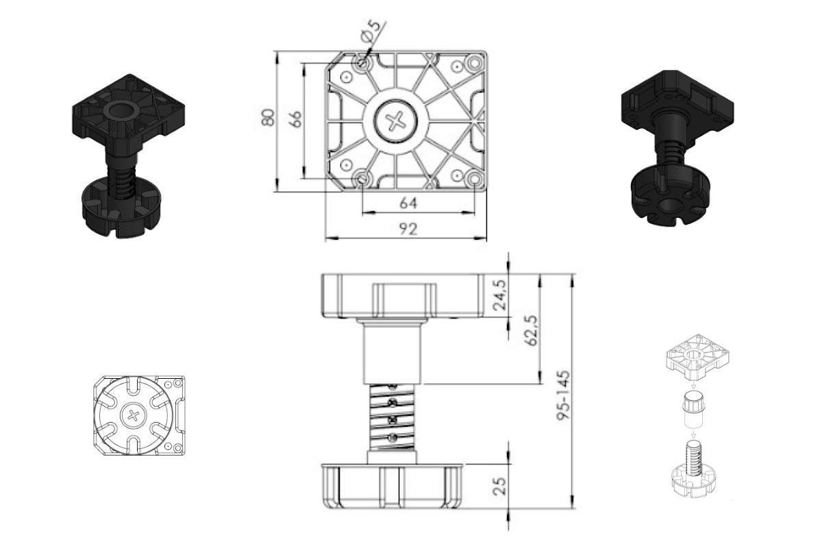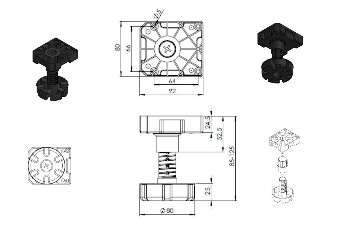 • Höhenvarianten: 50-75 mm, 65-85 mm, 85-125 mm, 95-145 mm, 125-195 mm
