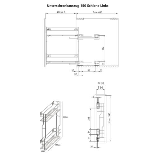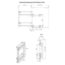 Unterschrankauszug 15 cm Soft-Close – 2 Etagen, Chrom, montage links