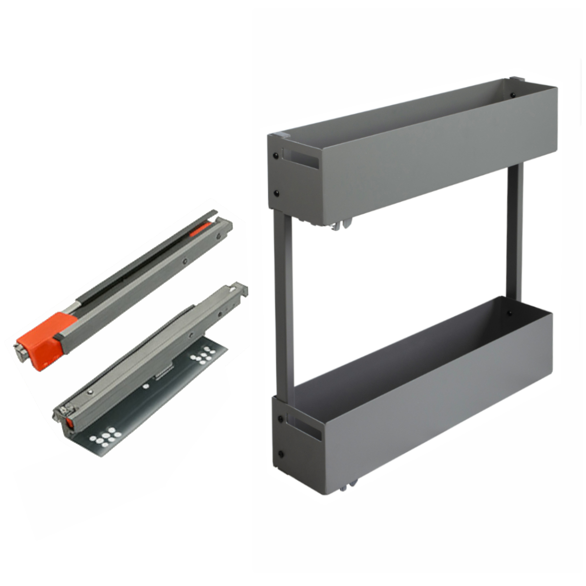 Der Unterschrankauszug Blum Softclose ist die ideale Lösung für Ihre moderne Küche. Dieser durchdachte Küchenauszug mit 2 Etagen eignet sich perfekt für schmale Unterschränke mit 150 mm oder 200 mm Breite und ermöglicht durch seitliche Montage eine flexible Integration in jede Küchenzeile. Der hochwertige BLUM Vollauszug bietet maximalen Komfort und Zugriff.