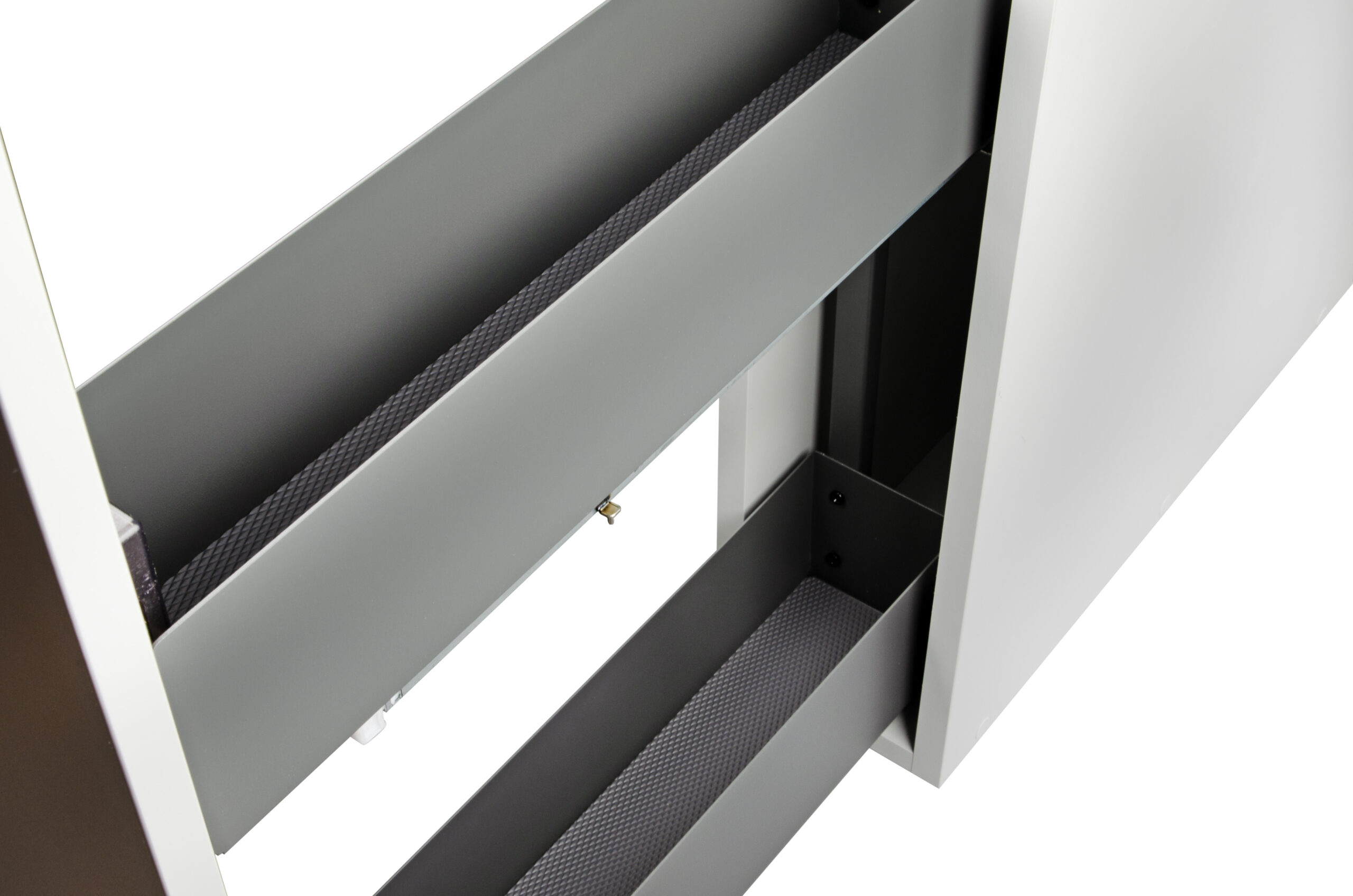 - Anthrazitfarbener, pulverbeschichteter Stahl – modern und pflegeleicht