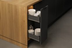 Dank der Softclose-Funktion lässt sich der Auszug leise und kontrolliert schließen. Darüber hinaus bietet die robuste Stahlkonstruktion eine langlebige Nutzung – auch bei täglichem Gebrauch.