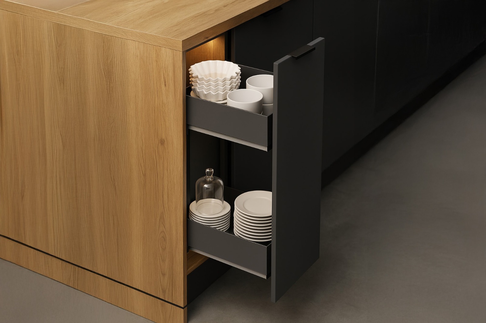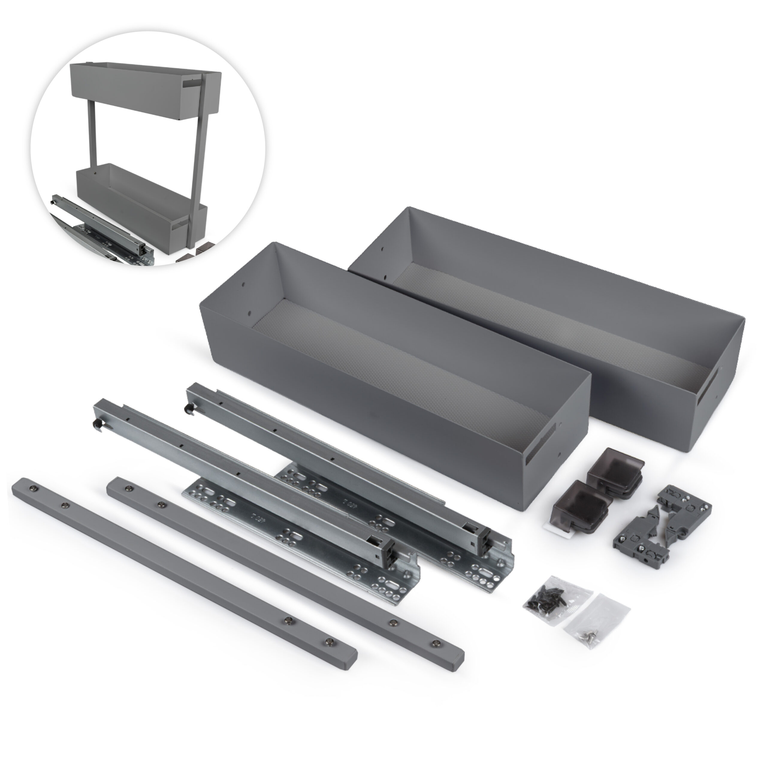 Unterschrankauszug 25–60 cm – 2 Etagen, Softclose, Anthrazit