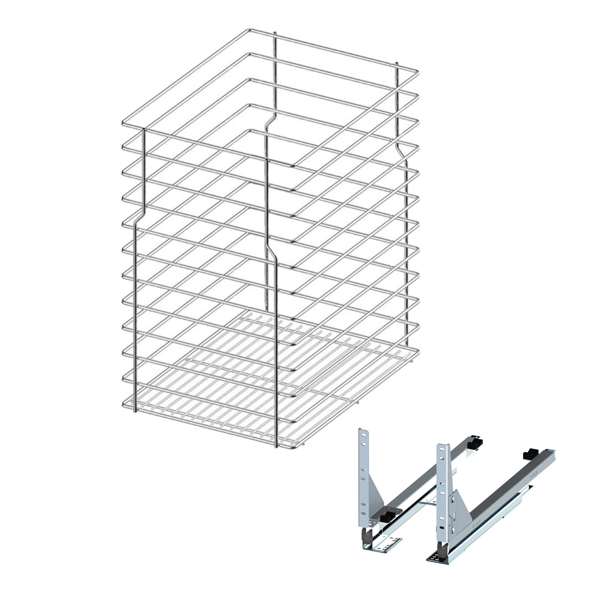 - Lieferumfang: 1× Korb, 2× Soft-Close-Schienen, Bohrschablone, Anleitung