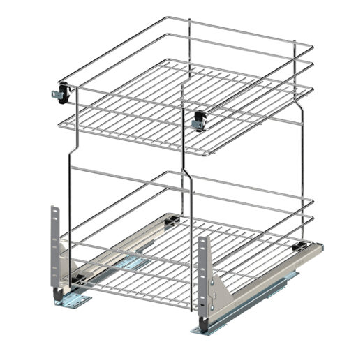 Unterschrankauszug 50 cm Soft-Close – 2 Etagen, Chrom, Bodenmontage (Bodenschienen)
