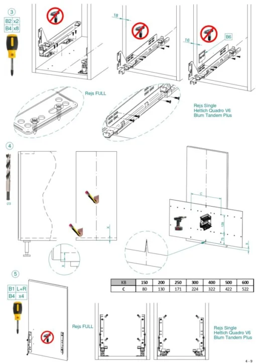 - Schrankbreiten: für 300/400/500/600 mm Unterschränke
