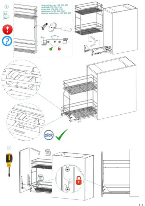 Die Montage des Unterschrankauszug Bodenmontage erfolgt direkt auf dem Schrankboden. Mit der Bohrschablone und dem ClickFixx-System werden die Schienen schnell ausgerichtet und befestigt. Der Auszug eignet sich für Küchen- und Badunterschränke sowie Hauswirtschaftsschränke und kann mit einer Frontblende kombiniert werden.