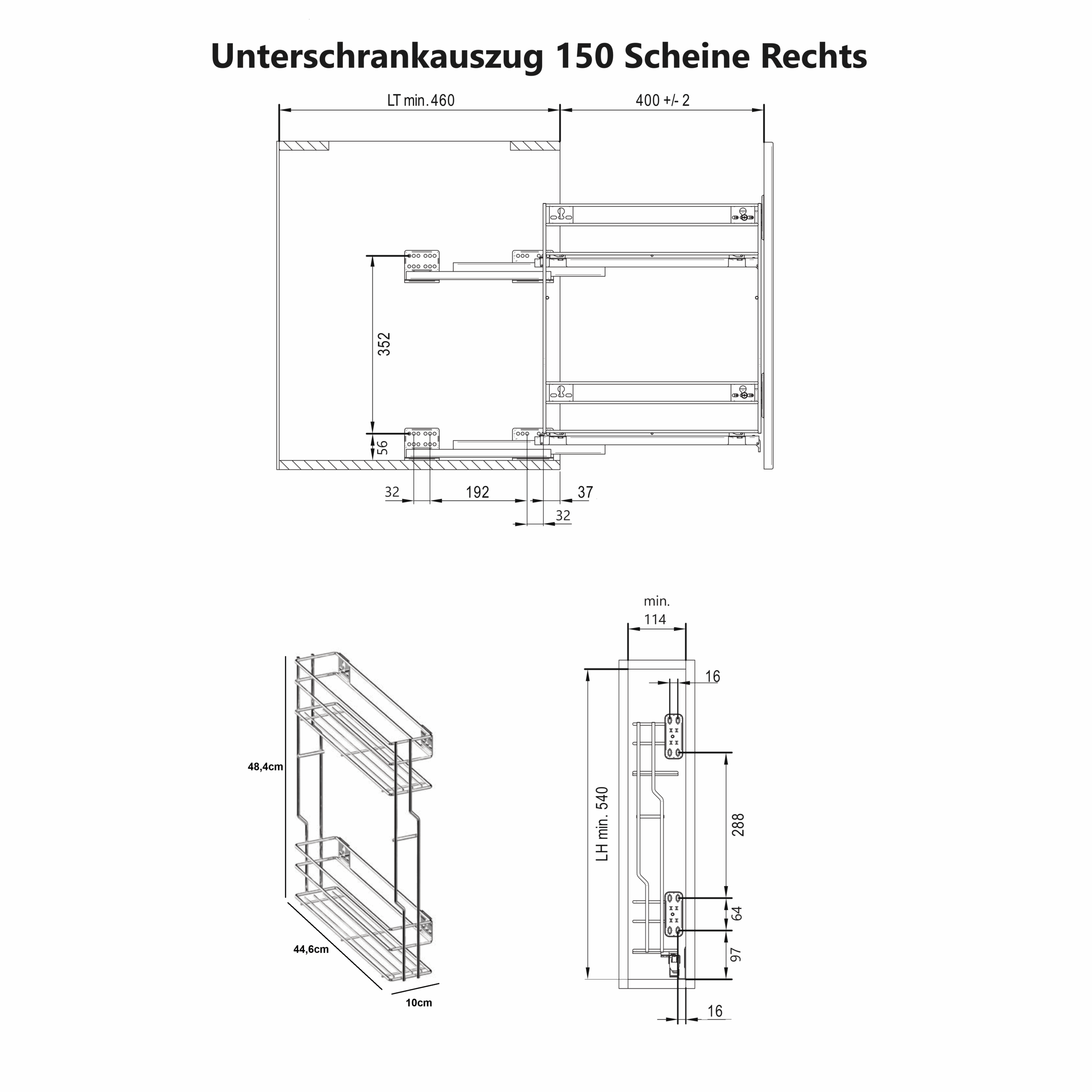 - Belastbarkeit: bis 15 kg pro Auszug