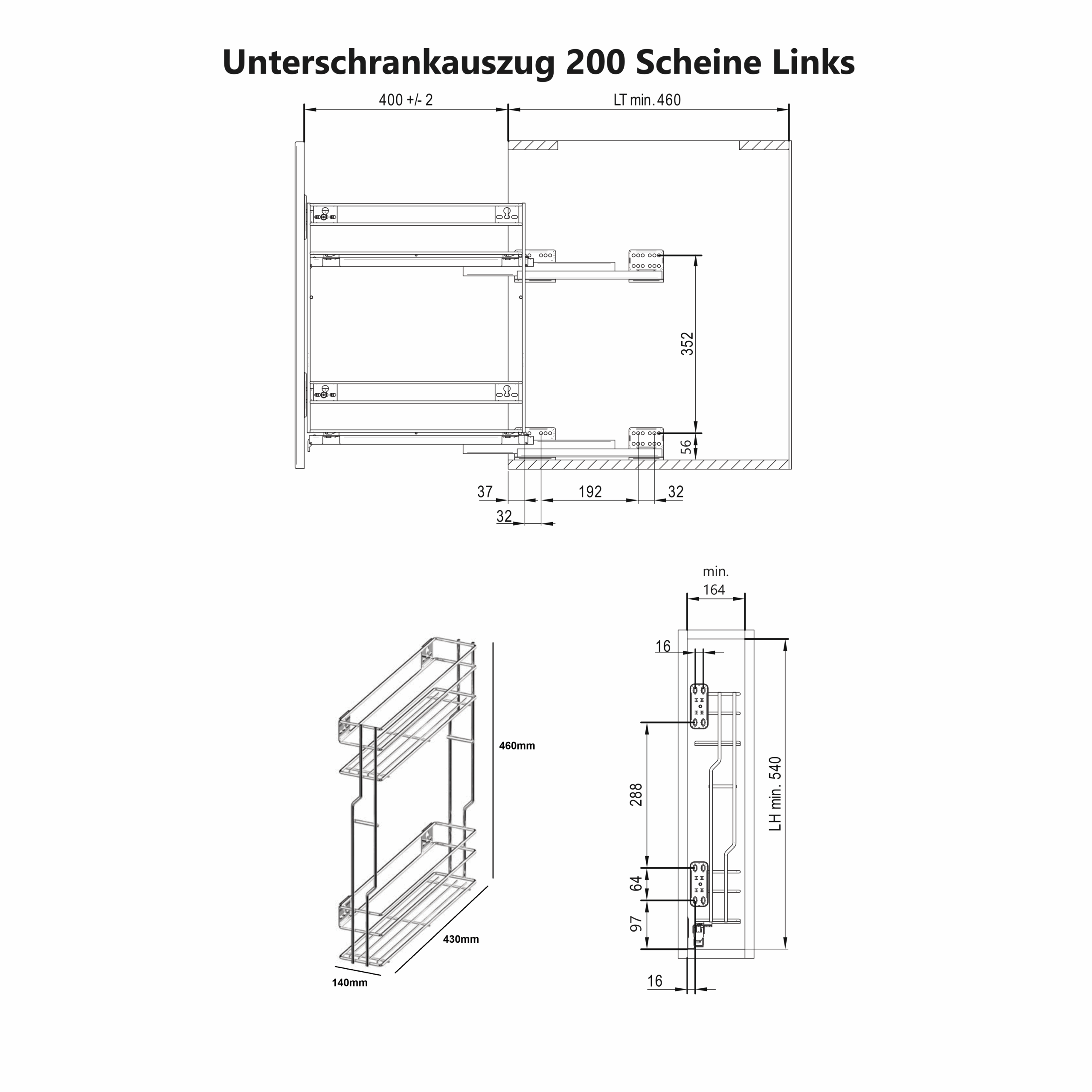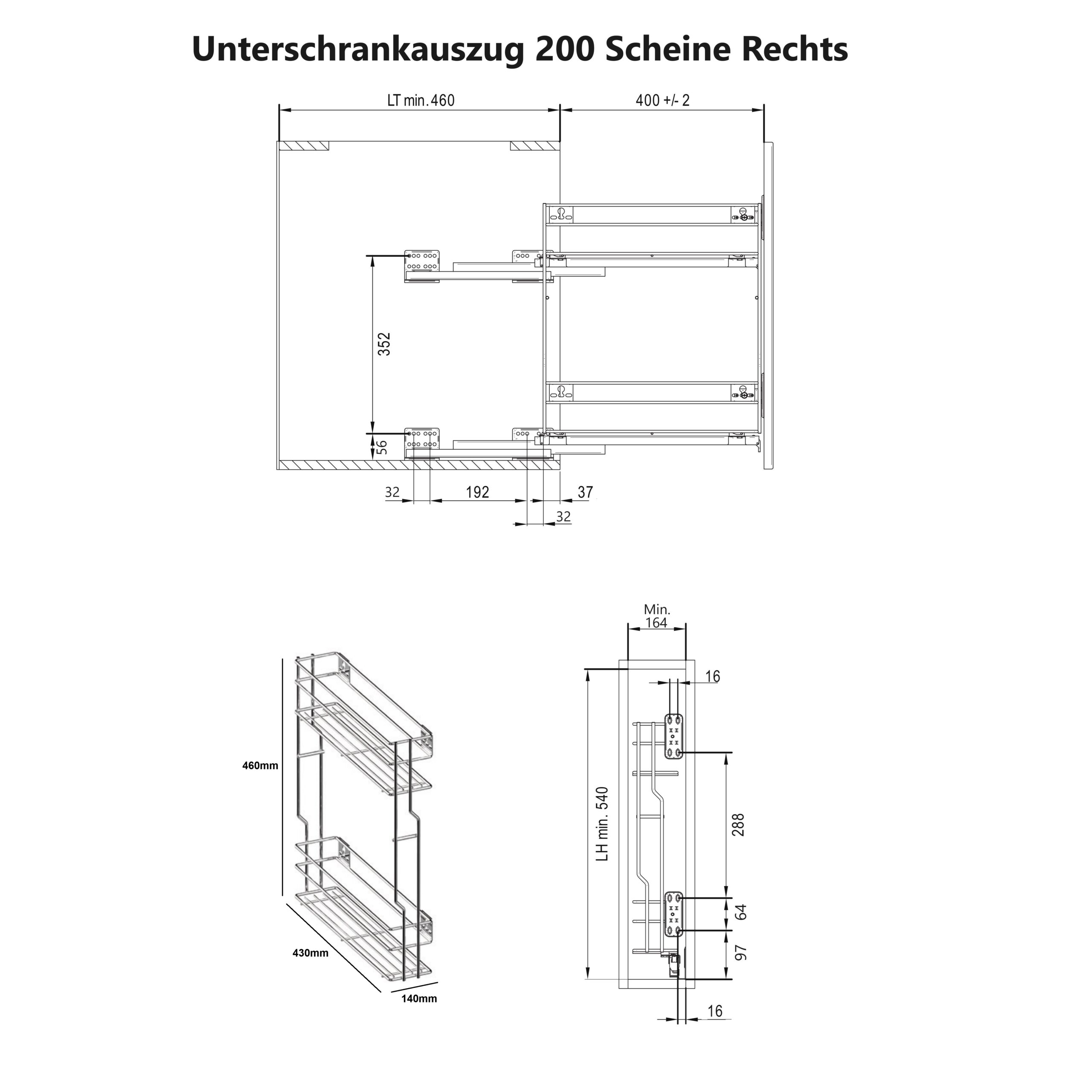 ✅ 200mm: Mindest-Innenmaße: B 164 mm × T 460 mm × H 540 mm