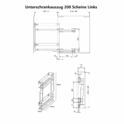 Unterschrankauszug Küche 2 Ebenen – 150/200/250 mm Anthrazit