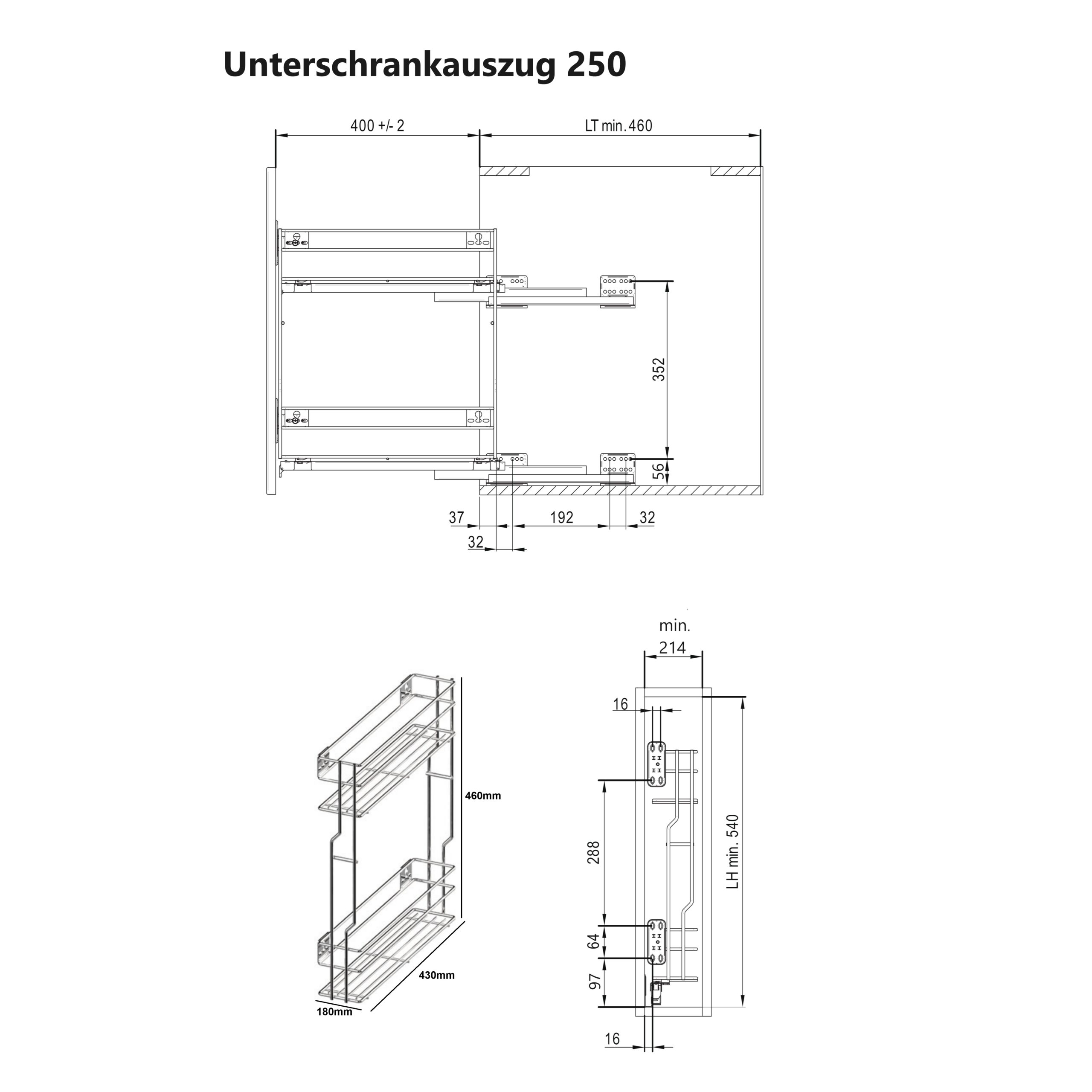Technische Daten Unterschrankauszug 25 cm