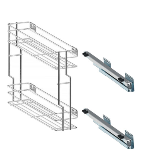 Unterschrankauszug Küche 25 cm Soft-Close – 2 Etagen, Chrom, montage rechts