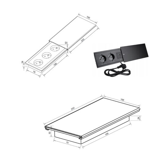 • Maße: Abdeckung 200 x 100 mm, Ausschnitt 71 x 189 mm