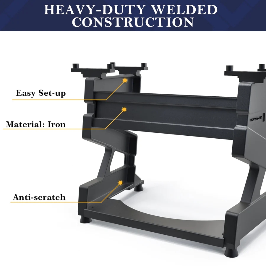 Die Kurzhanteln bieten 8 Gewichtsstufen, einstellbar von 6 kg bis 40 kg. Dank des präzisen Mechanismus kannst du das Gewicht im Handumdrehen an dein Training anpassen – ganz ohne viele verschiedene Hantelpaare. Im Set enthalten ist auch ein robuster schwarzer Ständer, der für Ordnung sorgt. Statt Chaos im Home Gym hast du ein kompaktes, vielseitiges Trainingsgerät!