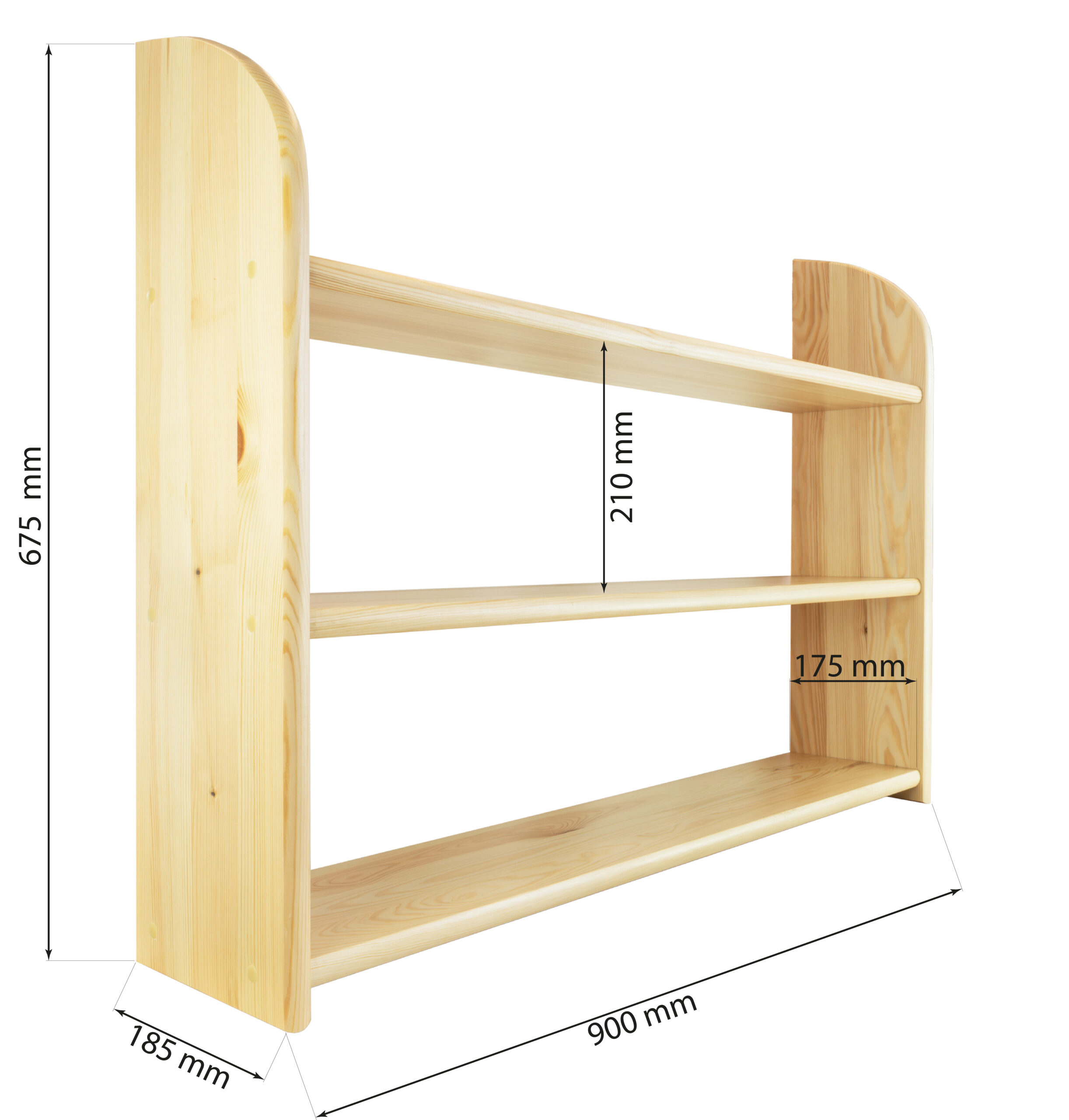 Höhe: 67,5 cm, Tiefe: 18,5 cm, Breite: 90 cm. - Wie viele Böden hat es?