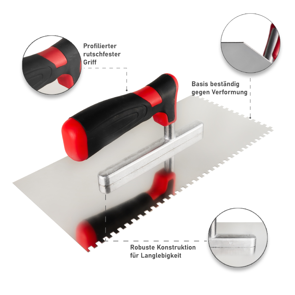 • Ausführung: für präzises Verteilen und Kämmen von Kleber