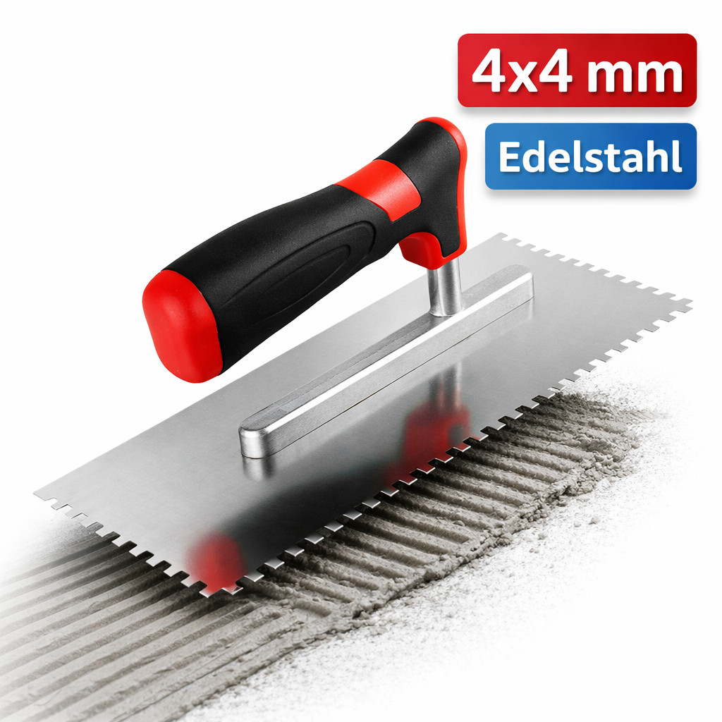 Zahnkelle 4×4 mm Edelstahl 270×130 mm – Fliesenkelle mit Softgriff